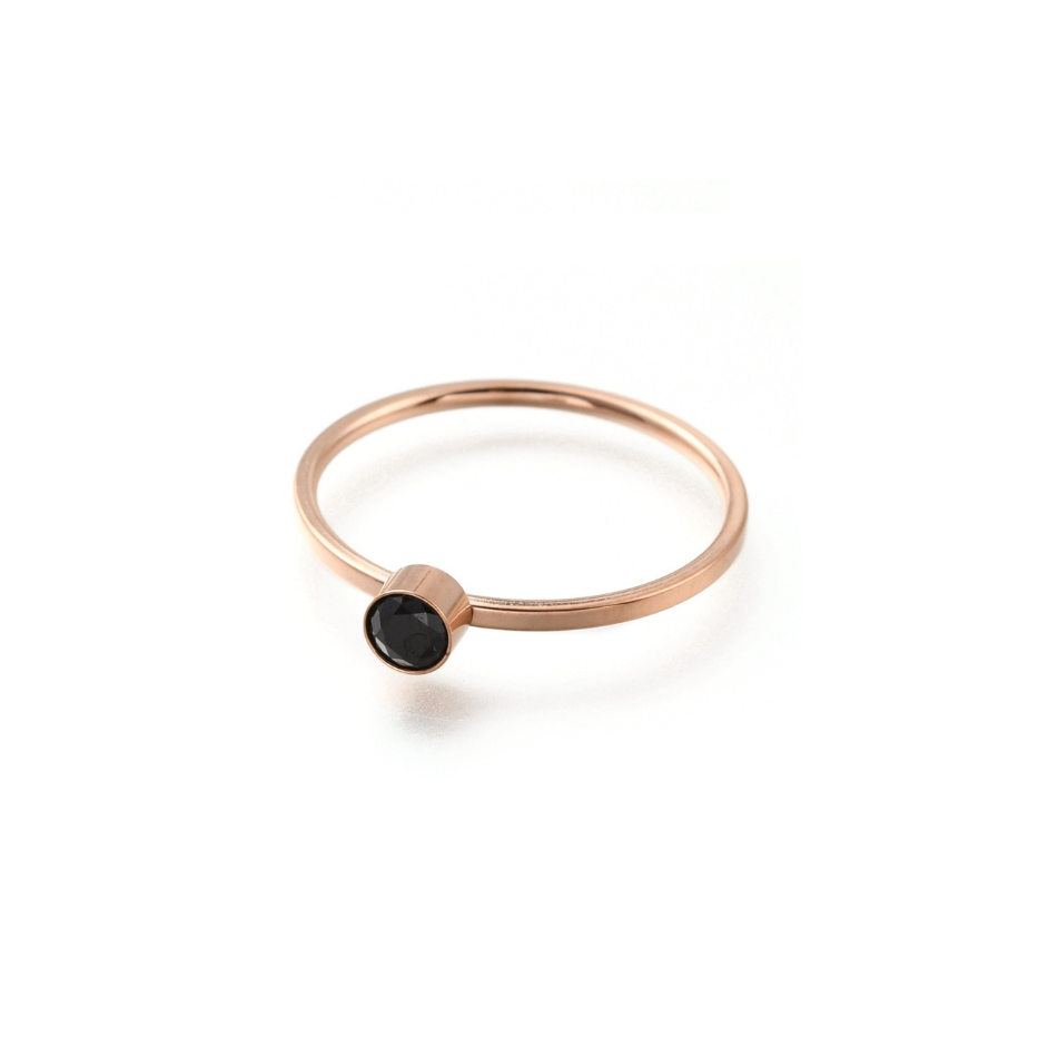 Inel din inox placat cu aur 14k Rose-Gold, 5.5 cm Black Stone