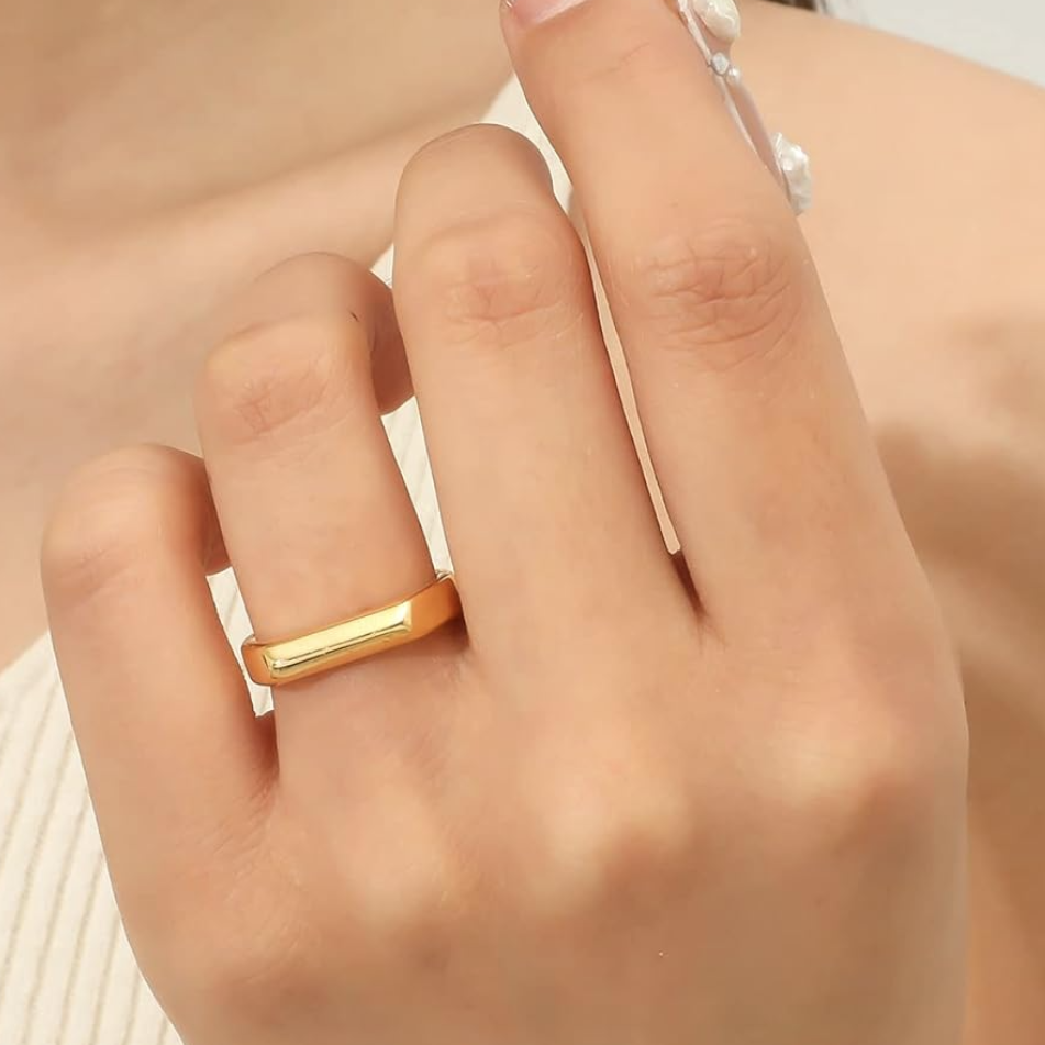 Inel Simple Baguette inox placat cu aur