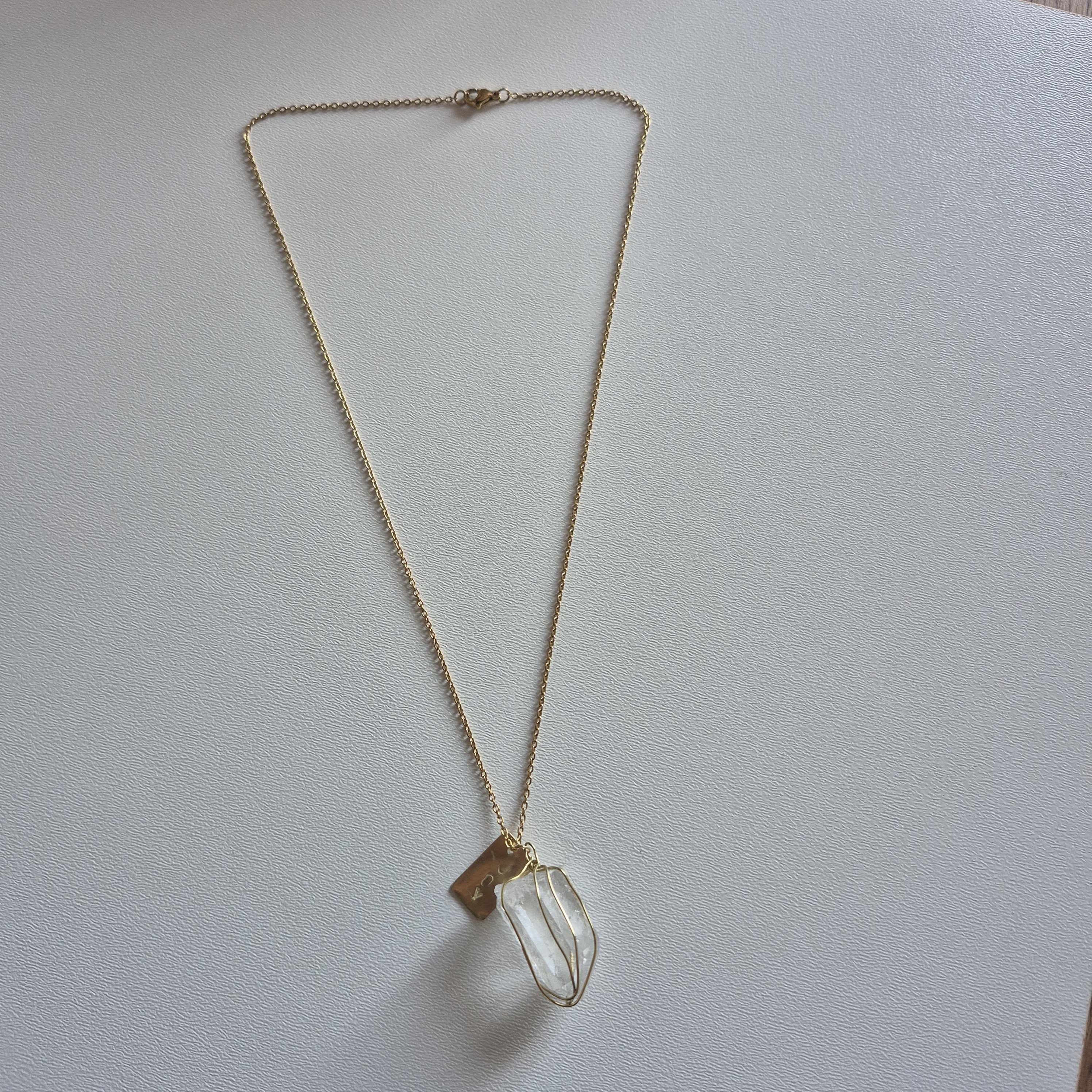 Colierul Intentions Cristal de stanca este o bijuterie elegantă, realizată din inox placat cu aur de 14k, ce îmbină frumusețea naturală a pietrei brute de cristal cu un design sofisticat. Înfășurată în sarma de alamă, această piatră simbolizează calmul, pacea, bucuria, fiind însoțită de cuvântul sugestiv „JOY”, care adaugă o notă de inspirație. Creat cu scopul de a manifesta bbucuria în viața purtătorului, acest colier devine nu doar un accesoriu, ci și un talisman al norocului și succesului. Toate cristalele brute sunt purificate.