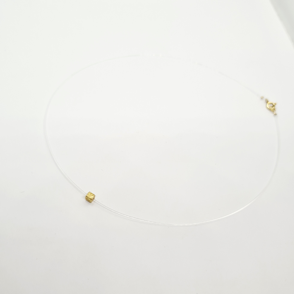 Experimentează o eleganță subtilă și un farmec discret cu colierul Invisible Necklace Golden Cube. Avand un pandantiv din argint aurit in forma de cub delicat nefinisat , acest colier adaugă un element subtil și rafinat oricărei ținute. Designul său minimalist este completat de un snur transparent, oferind senzația de lejeritate și grație. Acest colier discret este perfect pentru a completa orice outfit, adăugând o notă de farmec și subtilitate fiecărei apariții. Poate fi purtat atât alături de bijuterii argintii cât și aurii.