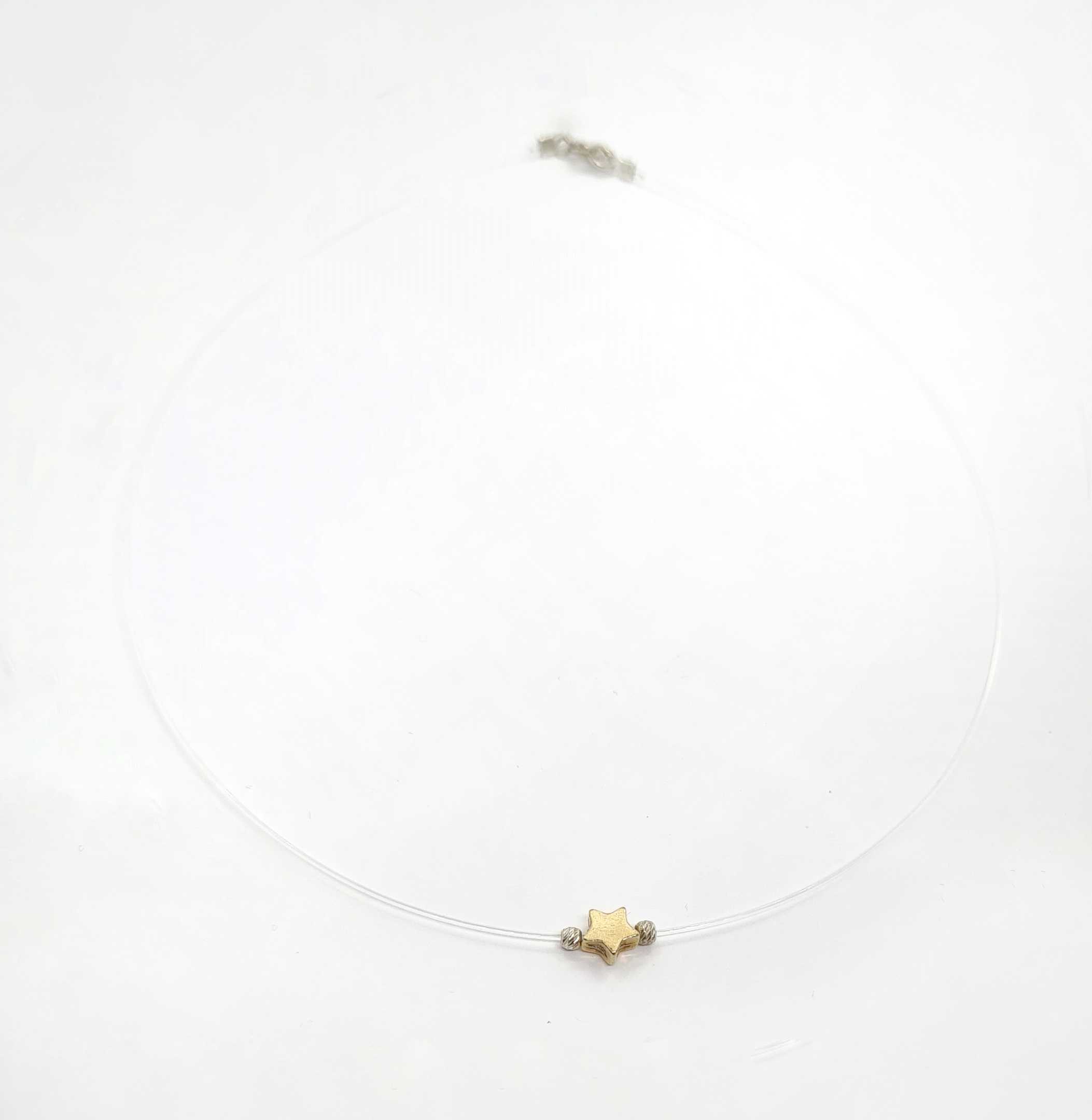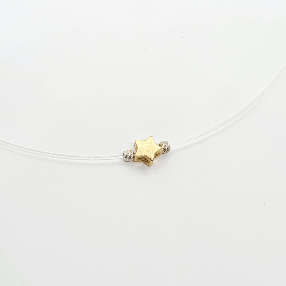 Experimentează o eleganță subtilă și un farmec discret cu colierul Invisible Necklace Star. Avand un pandantiv din argint aurit in forma de steluță delicată înconjurată de 2 bile slash din argint, acest colier adaugă un element subtil și rafinat oricărei ținute. Designul său minimalist este completat de un snur transparent, oferind senzația de lejeritate și grație. Acest colier discret este perfect pentru a completa orice outfit, adăugând o notă de farmec și subtilitate fiecărei apariții. Poate fi purtat atât alături de bijuterii argintii cât și aurii.